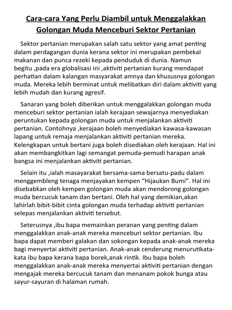 Related : Karangan Langkah Untuk Menggalakkan Generasi Muda Menceburi Bidang Pertanian - Ajukan pertanyaan tentang tugas sekolahmu..