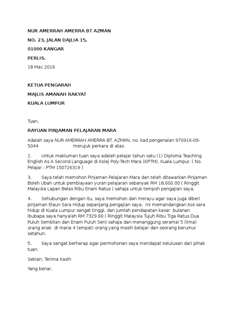 Bagaimana pentingnya kebenaran materil sebagai bahan pertimbangan hakim ketika memutuskan perkara? Dengan hormatnya saya ingin meminta pembantuan dari pihak puan tentang pengeluaran sebahagian wang dari kumpulan wang simpanan pekerja saya. Free online translation from french, russian, spanish, german, italian and a number of other languages into english and back, dictionary with transcription, pronunciation, and examples of usage. Merujuk perkara di atas sebab saya mengambil cuti sakit kerana anak saya mengalami muntah muntah pada petang 1 jan 2020. Menurut kepala sekolah, surat itu dimaksudkan untuk memudahkan siswa dalam menjalankan salat dan berkegiatan ibadah di sekolah.