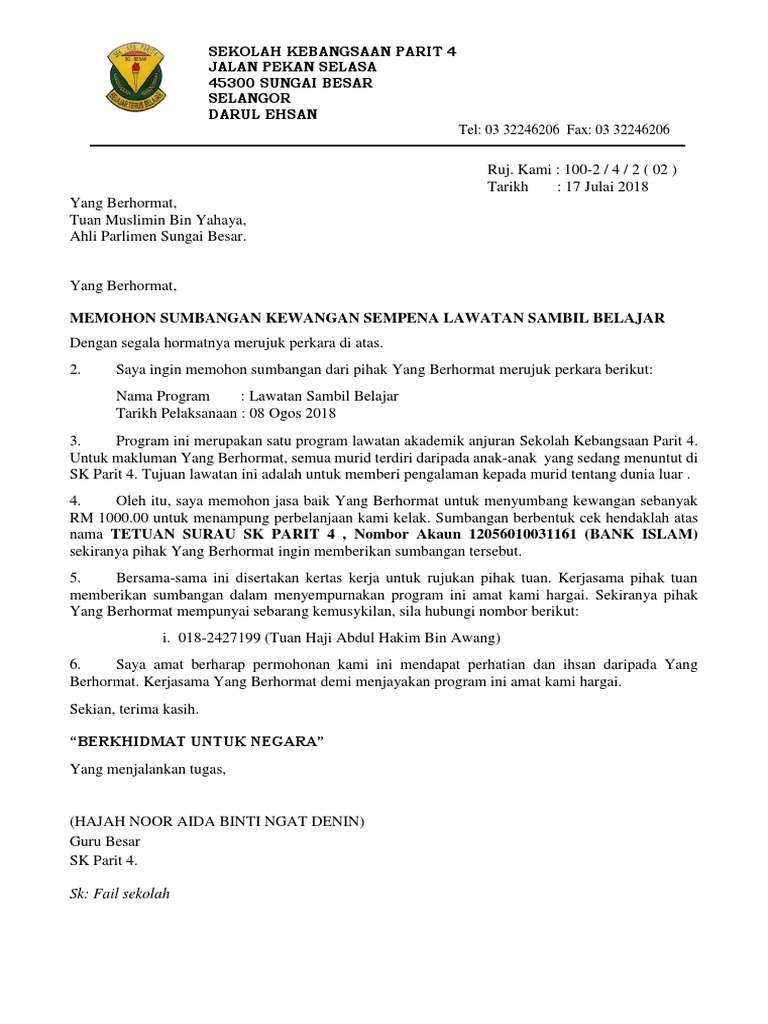 Related : Surat Mohon Sumbangan Yb : 14 Contoh Surat Letak Jawatan Pibg - Maybe you would like to learn more about one of these?.